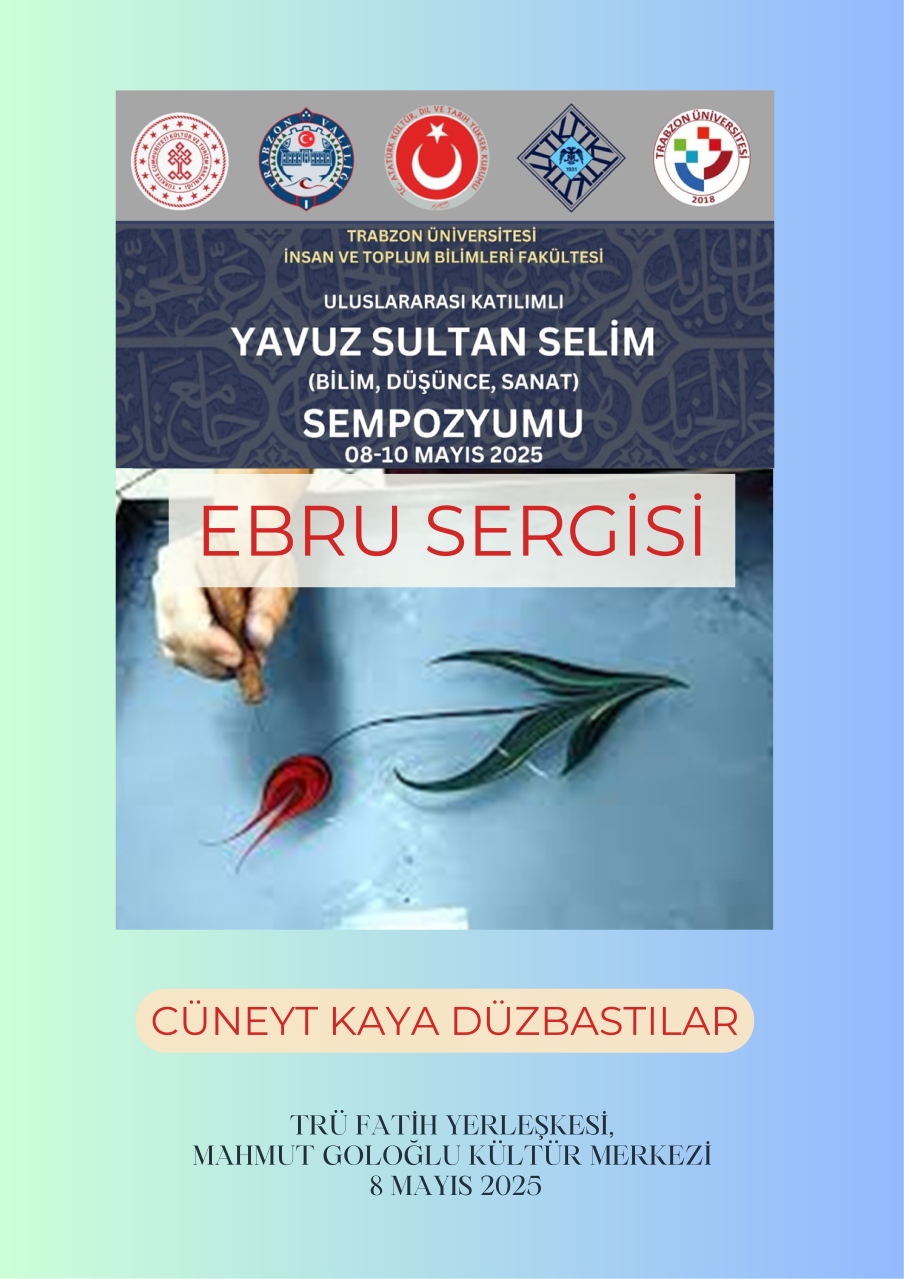 Uluslararası Katılımlı Yavuz Sultan Selim (Bilim, Düşünce, Sanat) Sempozyumu kapsamında 8 Mayıs'ta Cüneyt Kaya DÜZBASTILAR'ın Ebru Sergisi yer alacaktır.