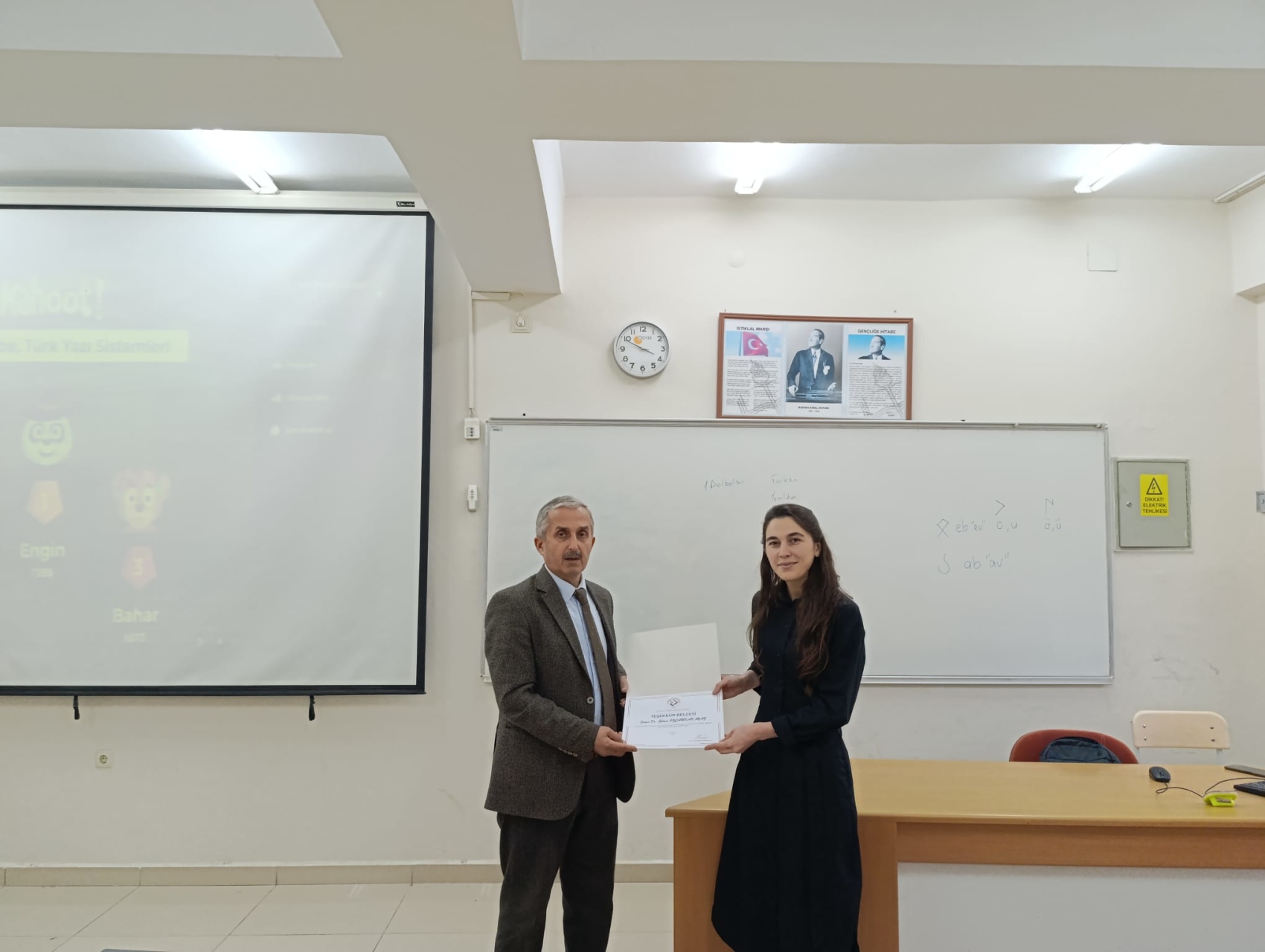 Sunumda Türkçenin tarihsel süreç boyunca kullandığı Göktürk, Uygur, Arap, Kiril ve Latin alfabeleri üzerine kapsamlı bir çerçeve sunuldu. Dr. Özçamkan Ayaz, alfabe değişimlerini örnekler eşliğinde ele aldı. Fakülte seminerleri, bu sunumla birlikte dönemlik programını başarıyla tamamladı.