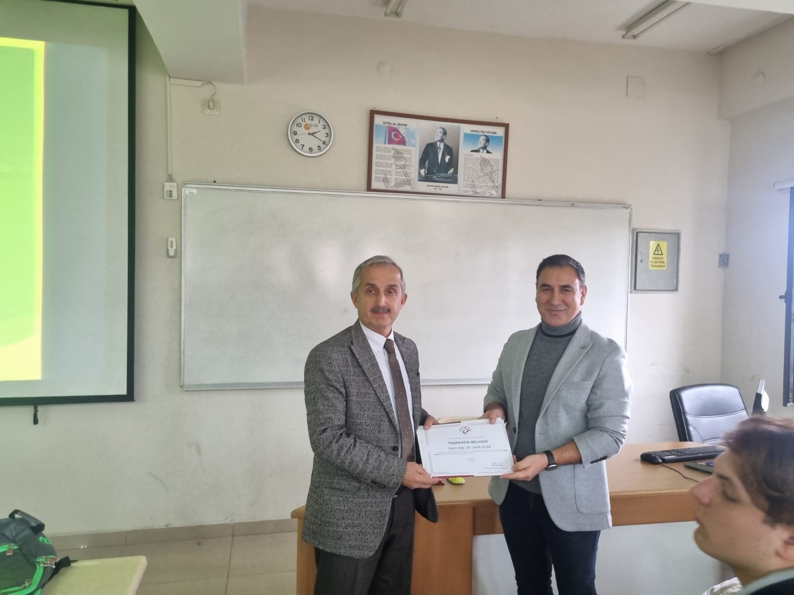 Konferansta, Mehmet Âkif Ersoy’un eserlerinde yer alan insan ve toplum idealine vurgu yapılırken, onun fikirlerinin günümüz dünyasında taşıdığı anlam ve önem üzerinde duruldu. Öğrenciler ile akademik personelin yoğun ilgi gösterdiği program, soru-cevap bölümünün ardından Dekanımız Prof. Dr. Bilal KIRIMLI tarafından Doç. Dr. Salih UÇAK’a teşekkür belgesi takdimiyle sona erdi.