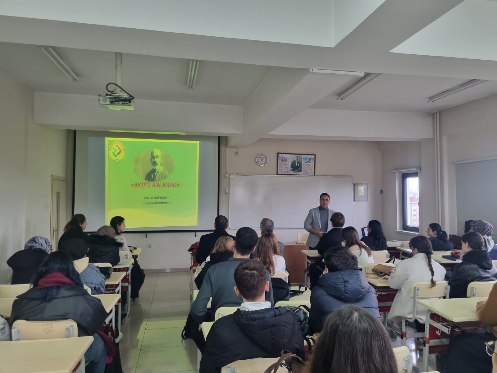 Fakültemizde, İstiklâl Şairi Mehmet Âkif Ersoy’un vefatının 89. yılı dolayısıyla “Akif’i Anlamak” başlıklı anma konferansı düzenlendi. Etkinliğin konuşmacısı, Türk Dili ve Edebiyatı Bölümü öğretim üyesi Doç. Dr. Salih UÇAK, Mehmet Âkif’in hayatı, kimliği, düşünce dünyası, Batı tasavvuru ve özellikle medeniyet anlayışı üzerine kapsamlı bir sunum gerçekleştirdi.